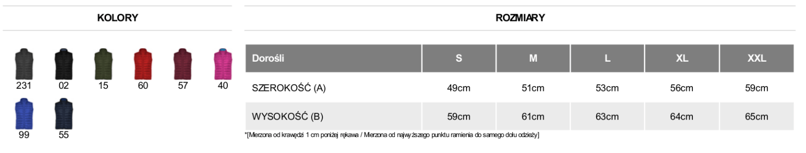 - Zamek błyskawiczny w kolorze kamizelki sięgający do podbródka.